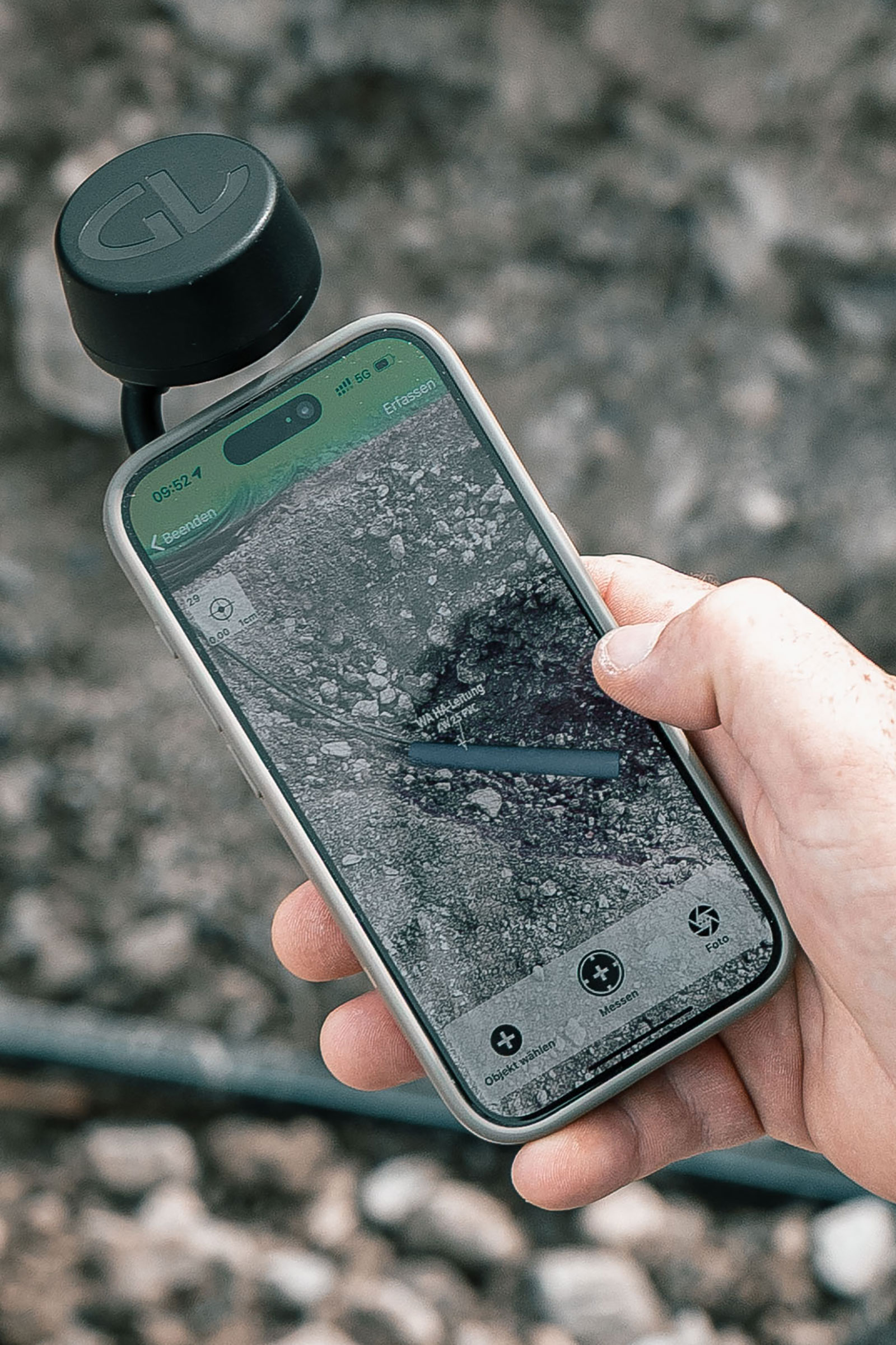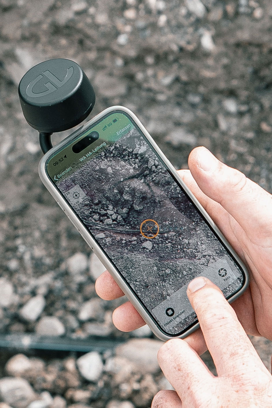 Ausgestattet mit einer hochpräzisen GNSS-Antenne und einer integrierten IMU erzeugt GeoCapture in Verbindung mit einem Smartphone exakte Positionsdaten durch moderne Sensorfusion.