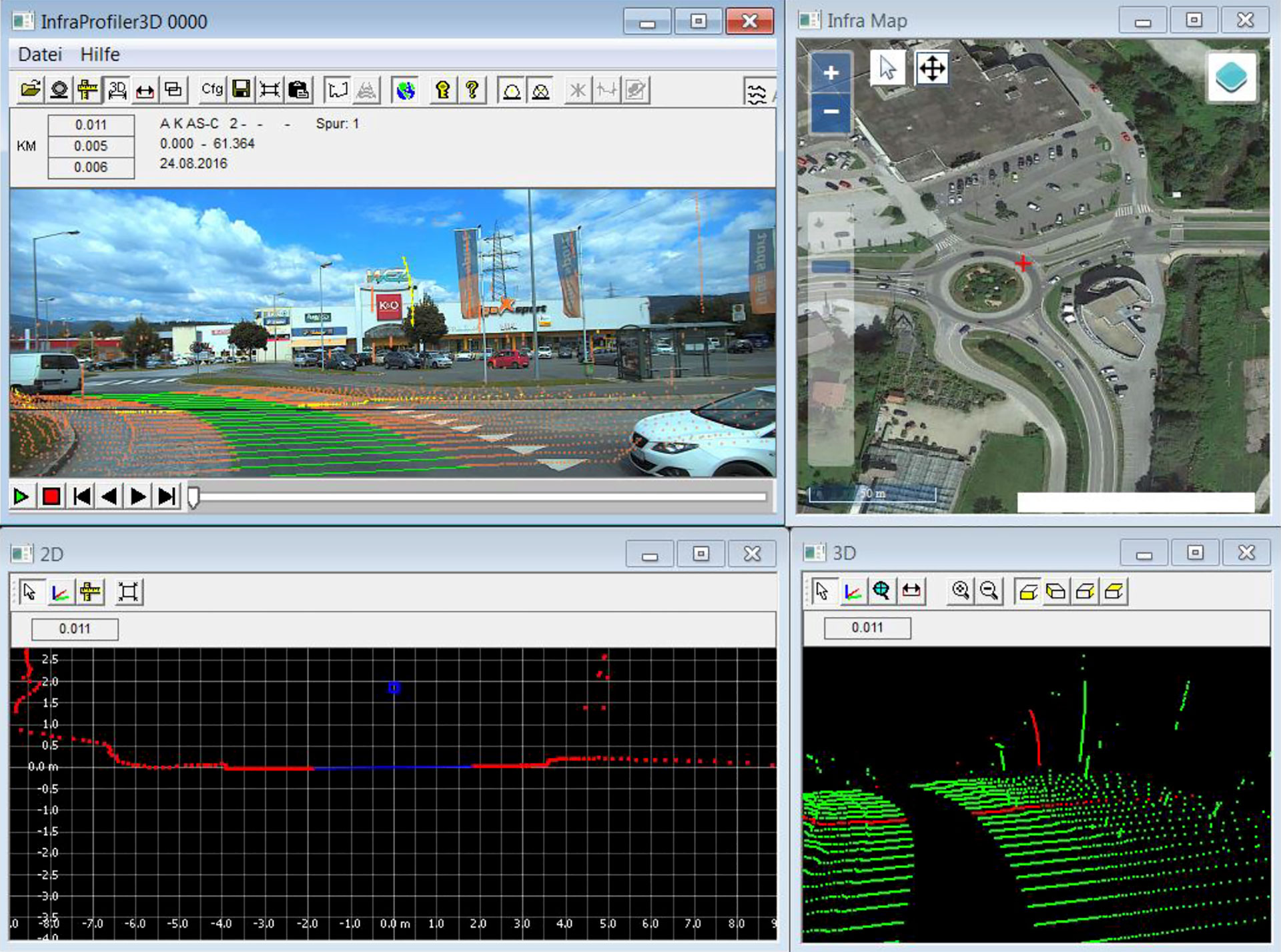 IMU – Lagedaten des Messfahrzeuges – dGPS RTK Daten, Quer & Längsneigung der Fahrbahn usw.